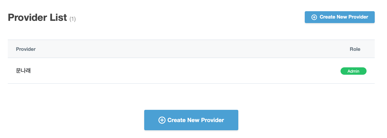 [ Create New Provider ] 버튼을 클릭하여 Provider를 생성합니다.