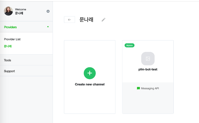 Provider란 우리가 만드는 app을 제공하는 개체입니다. 따라서 저희는 챗봇을 위한 채널을 생성할 수 있는 Provider를 먼저 생성해야 합니다.
