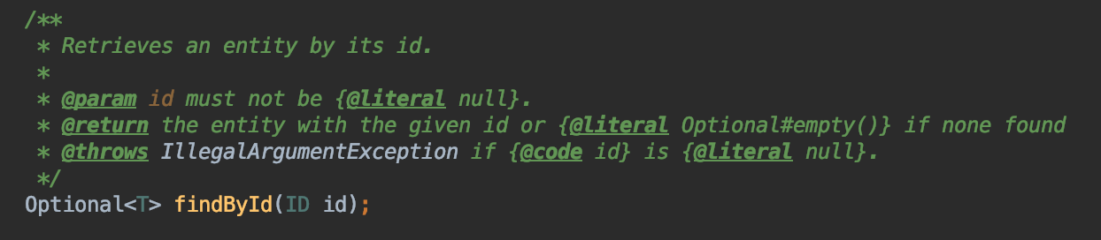 CrudRepository의 findById를 살펴보는 것으로 Optional에 대해 간단하게 살펴보겠습니다.
