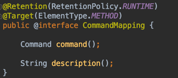 => 저는 Command와 해당 Command가 수행할 메소드를 지정해야 하기 때문에, Target을 ElementType.METHOD 로 설정했습니다.